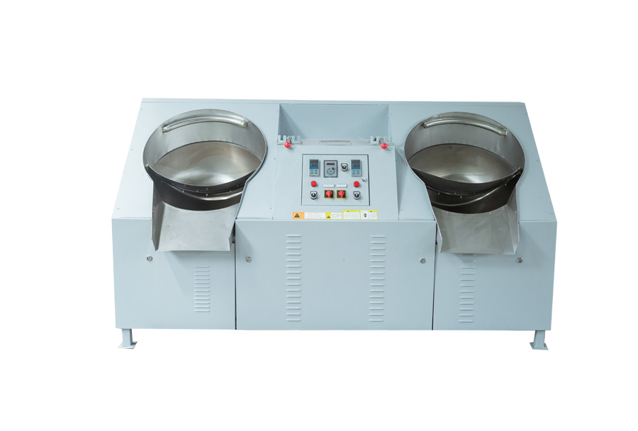 (2)、雙鍋曲毫炒干機(jī)適用于各類(lèi)卷曲型、球型名優(yōu)茶的做型炒制作業(yè)。目前市場(chǎng)上有50、60兩種鑄鐵鍋和壓制鍋兩種,壓制鍋外形更好,但在加熱后易變形,引起抄板和鍋?zhàn)涌ㄋ阑蜷g隙變大,從而增加碎茶或炒制茶葉外形不緊,鑄鐵鍋不存在這種現(xiàn)象,我公司一直使用鑄鐵鍋,50型采用掛擋調(diào)速、60型采用變頻調(diào)速。