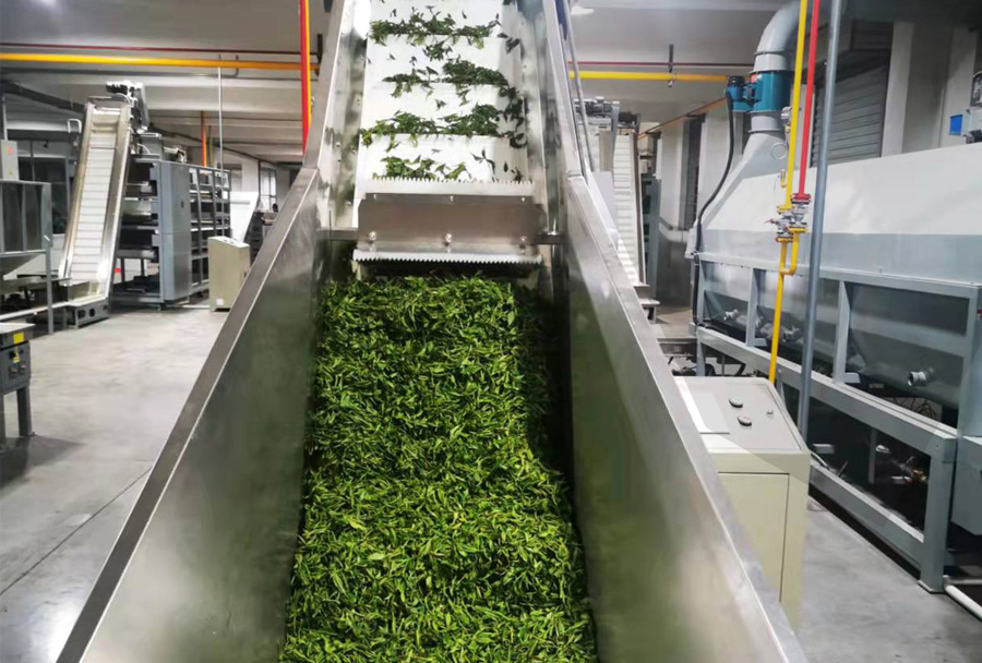 茶葉輸送機(jī)是茶葉加工生產(chǎn)線的重要組成部分,分皮帶式、振動槽式等,可平面輸送、高低錯位輸送,根據(jù)需要再配套勻葉、清理、調(diào)速、除塵等裝置,在整個(gè)生產(chǎn)線中起到連接主機(jī)、控制產(chǎn)能、平衡流量等功能,是生產(chǎn)線實(shí)現(xiàn)不落地、清潔化生產(chǎn)必不可少的配套設(shè)備。